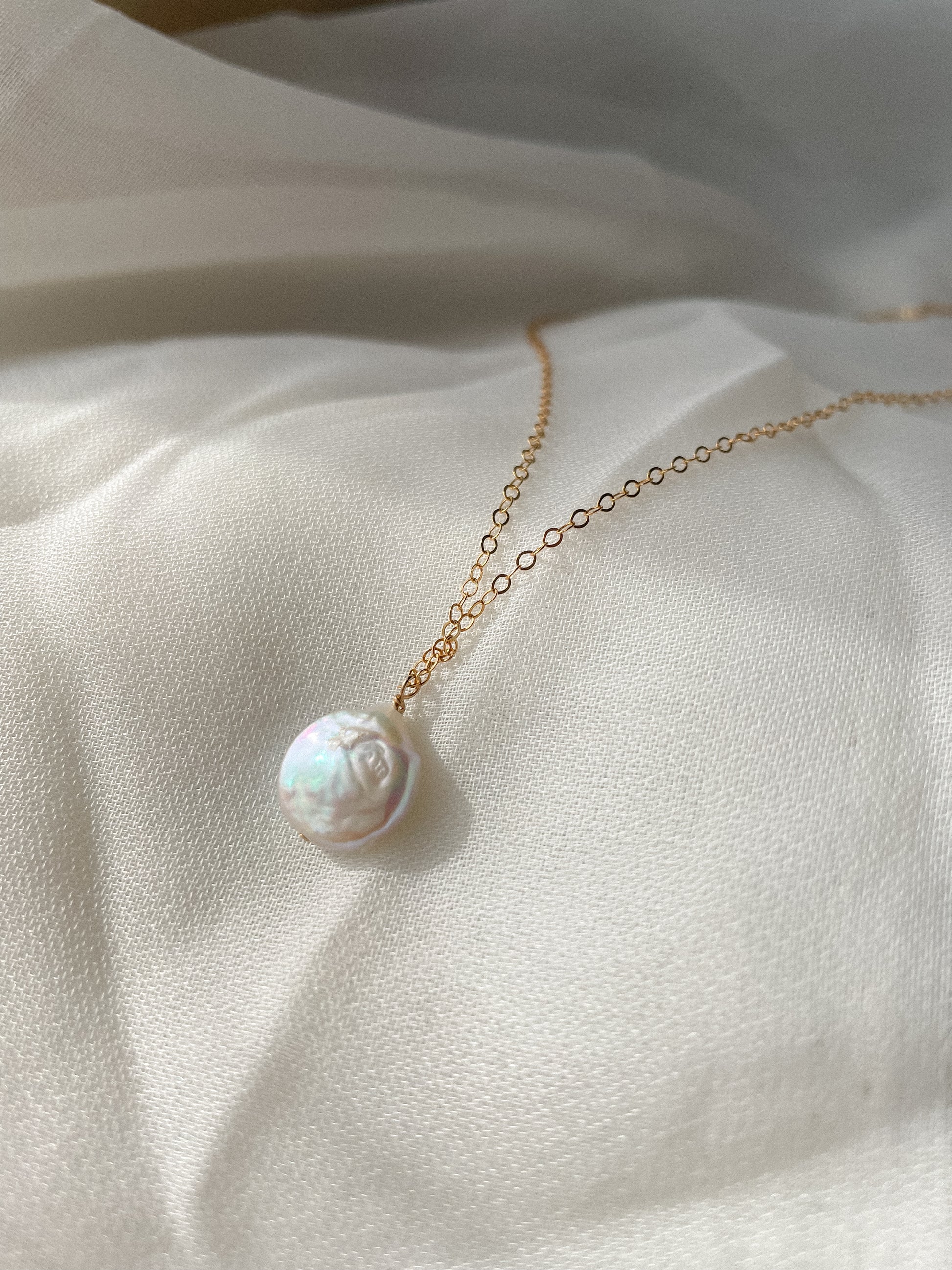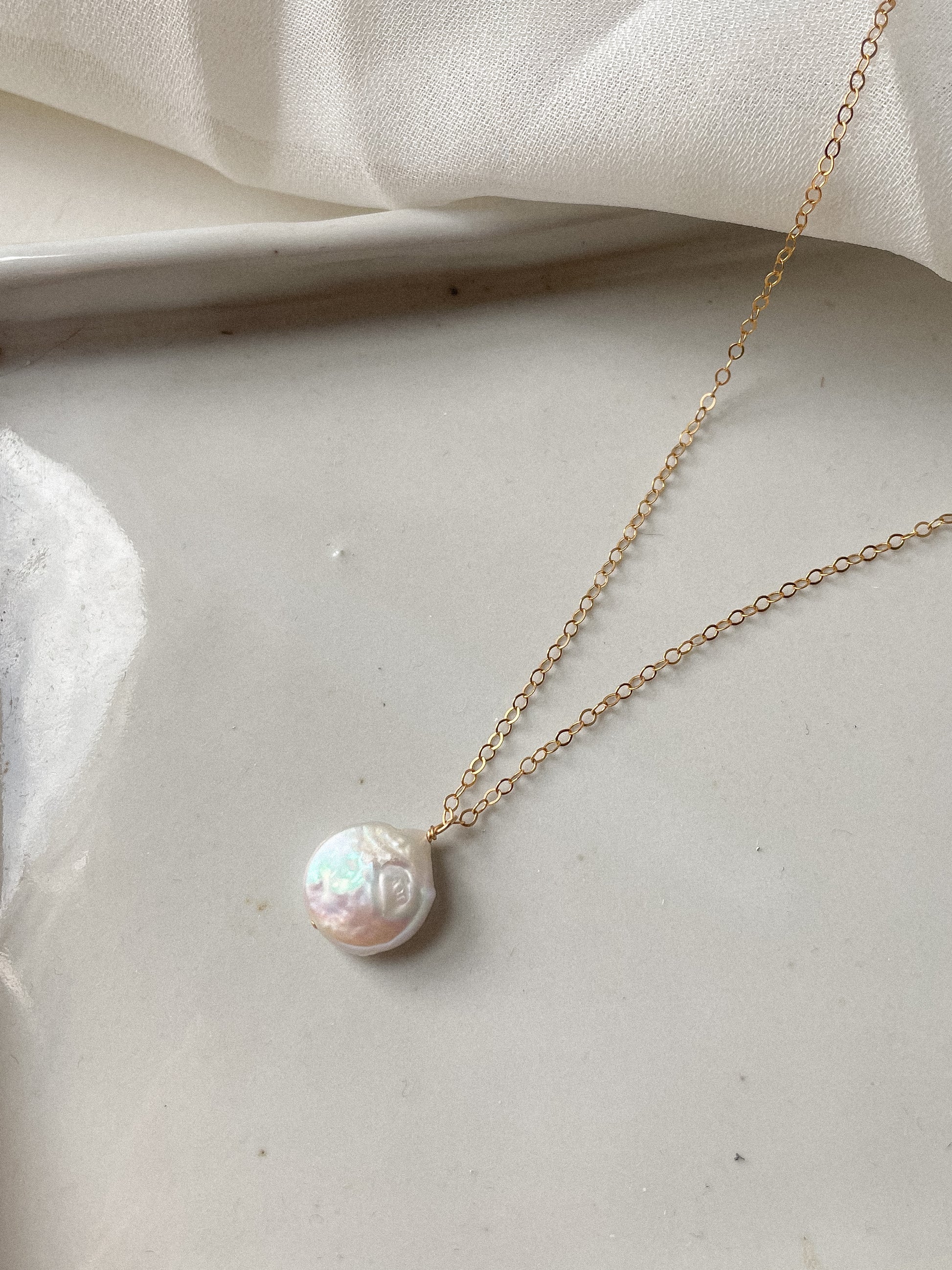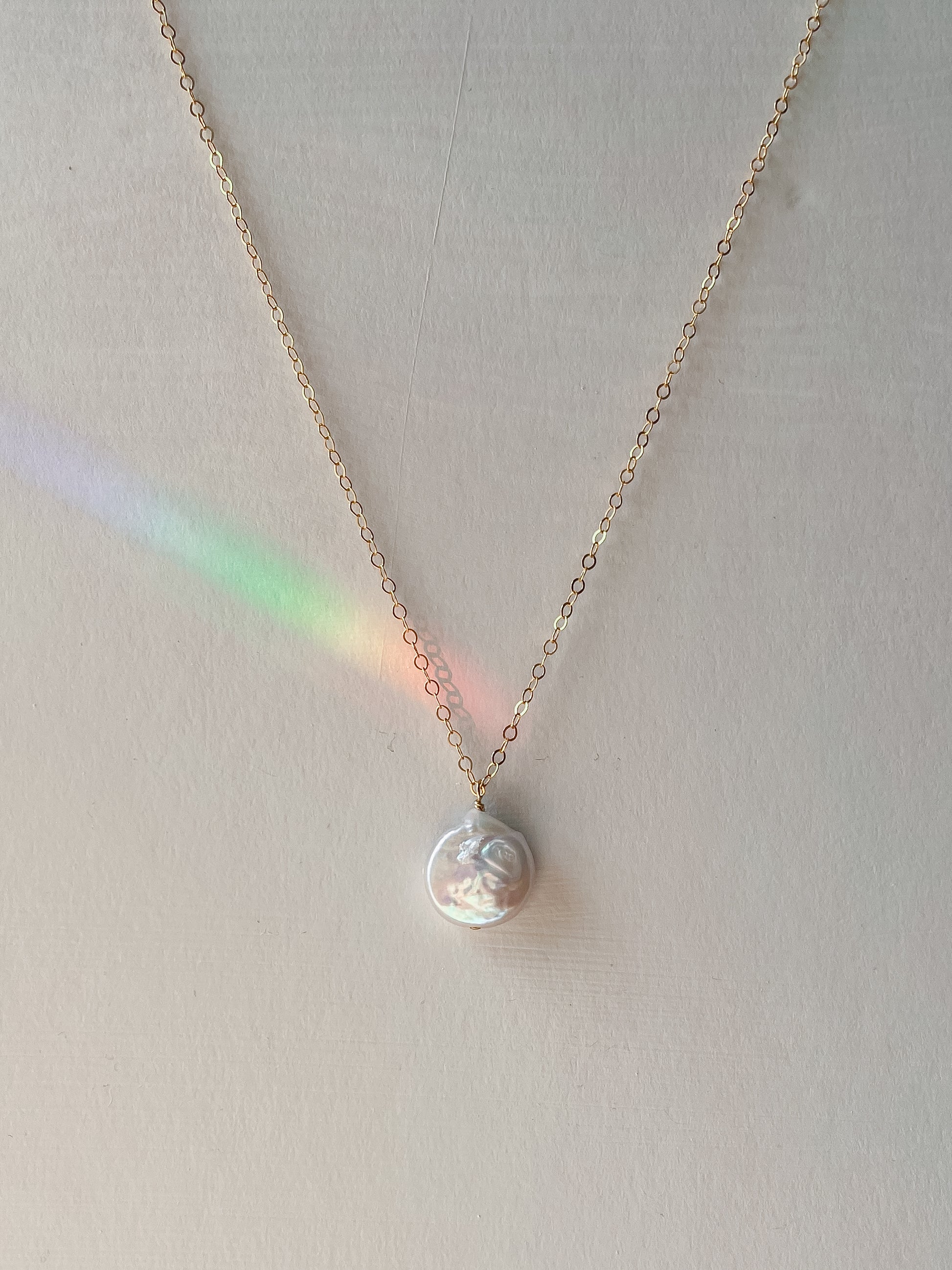 Crafted with a genuine freshwater pearl pendant a dainty 18" gold fill chain, this one will become a constant in your necklace rotation.