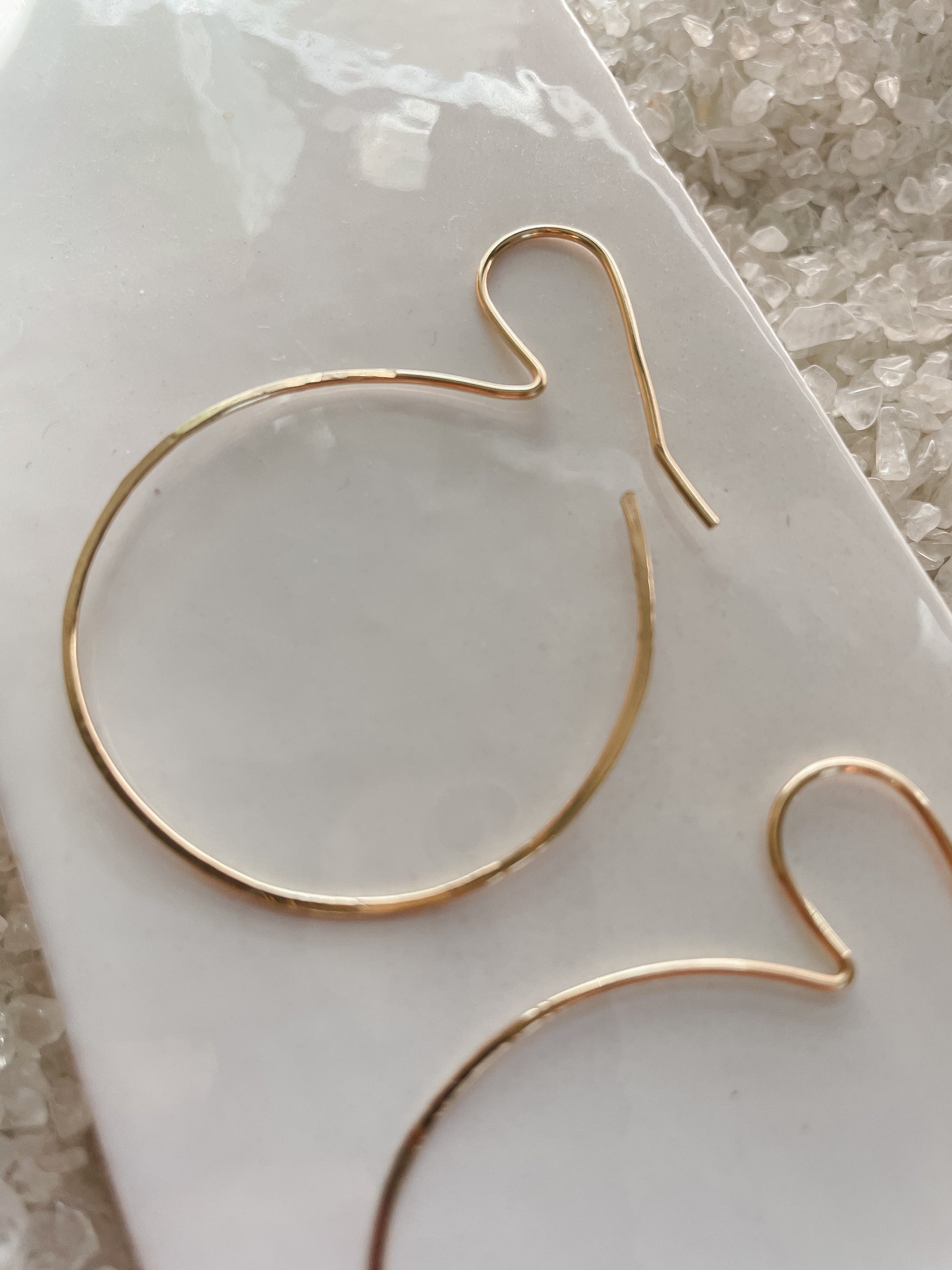 The Lilly Hoops create a balanced statement for a larger hoop while still being understated and lightweight. Crafted with gold fill hammered wire.