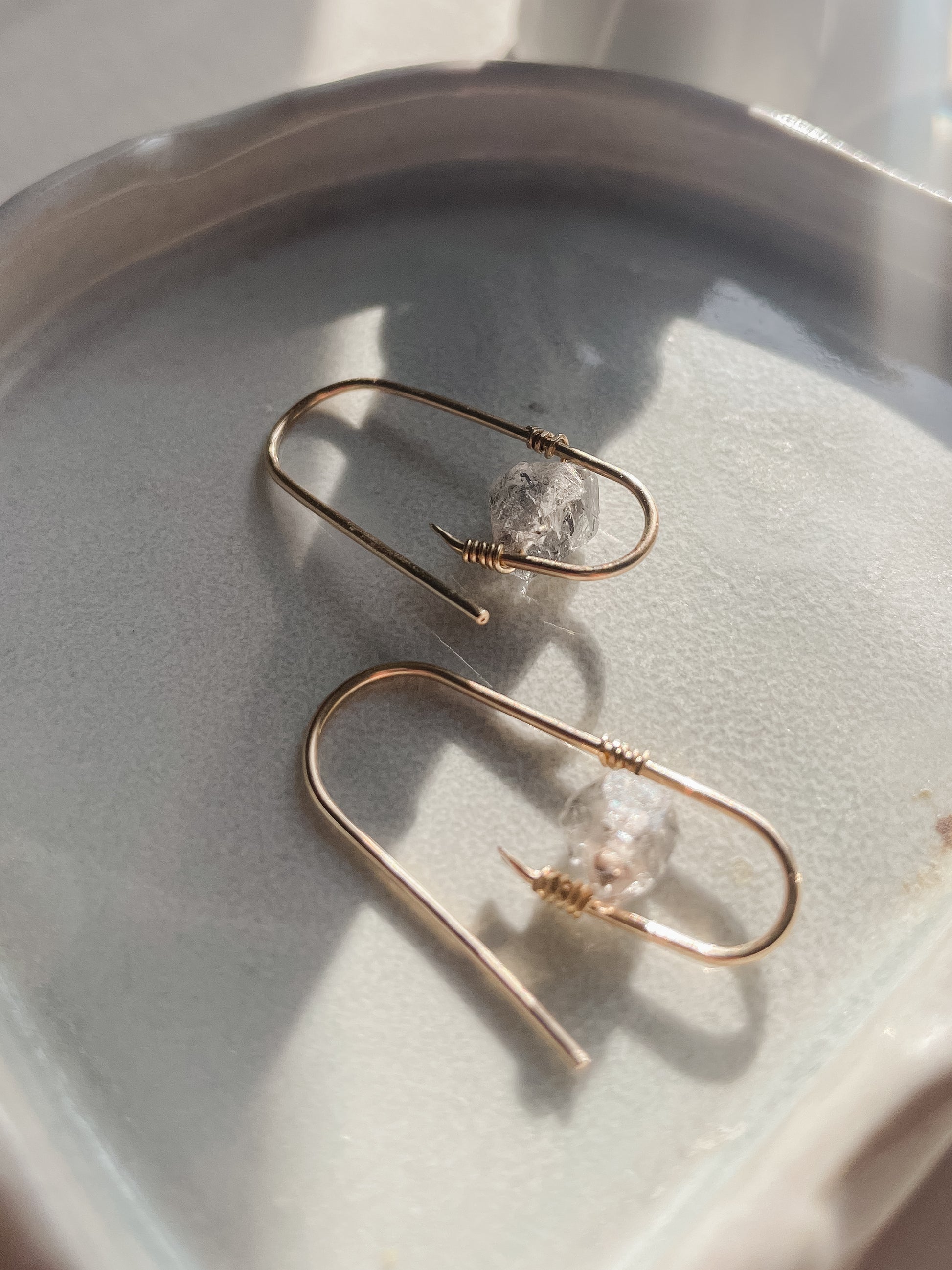 Introducing The Seraphine - a modern and smaller scale design featuring a beautiful salt and pepper herkimer diamond, beautifully woven into the gold filled frame.