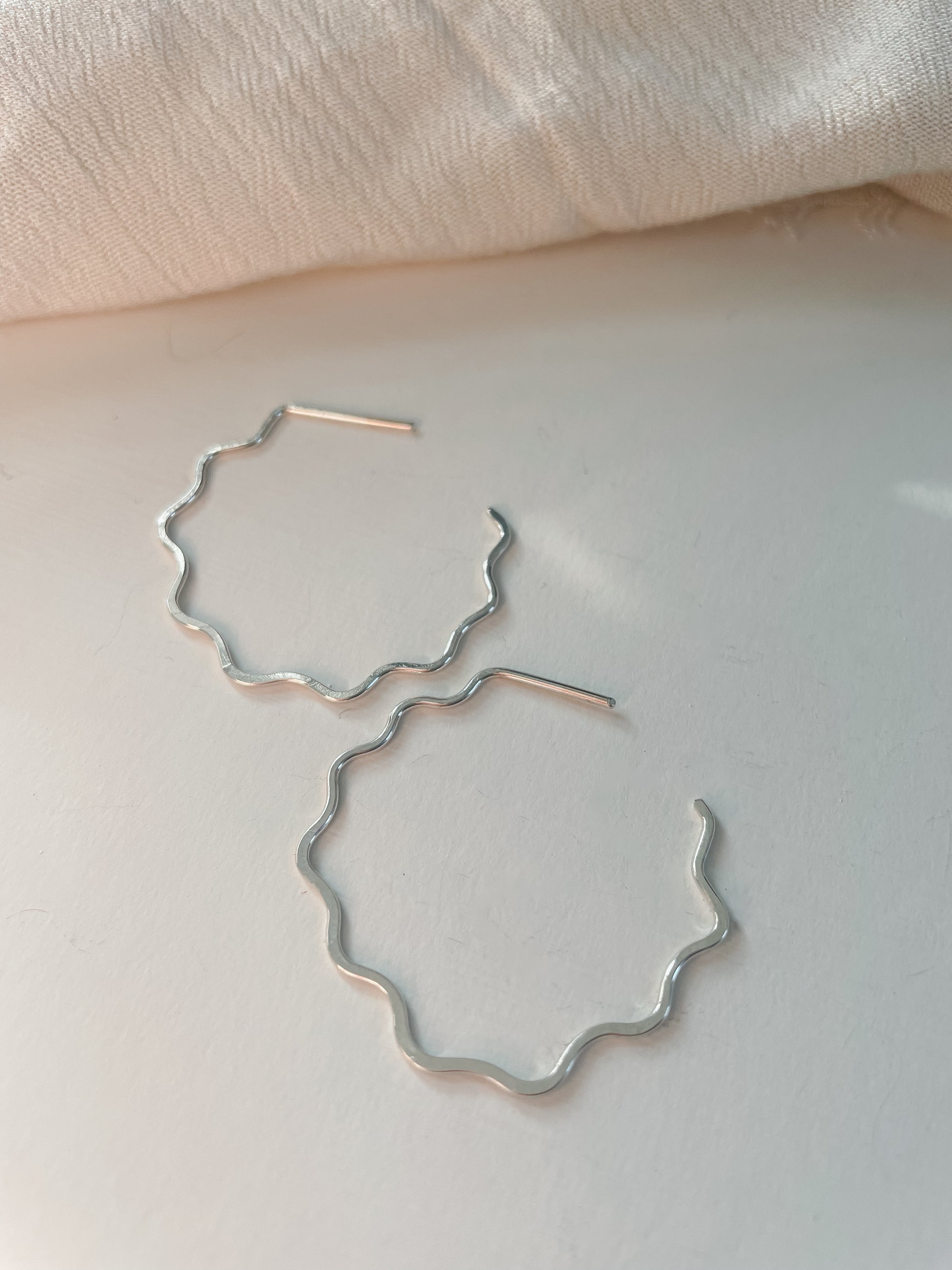 Love the look of a classic hoop but want something a little extra? With their wiggly and wavy design, these hoops break the mold. Crafted in either gold fill or sterling silver.
